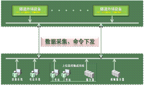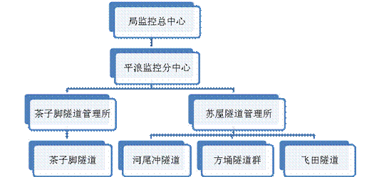 整個系統(tǒng)采用分層多級,控制級別包括局監(jiān)控總中心-平浪監(jiān)控分中心-隧道管理所-本地控制器。由九個子系統(tǒng)構成:交通監(jiān)控子系統(tǒng)、閉路電視監(jiān)視子系統(tǒng)、火災自動報警子系統(tǒng)、隧道通風控制子系統(tǒng)、隧道照明控制子系統(tǒng)、電力監(jiān)控子系統(tǒng)、緊急電話子系統(tǒng)、指令電話子系統(tǒng)、有線廣播子系統(tǒng)。