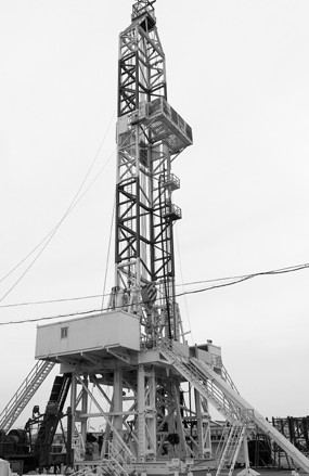 圖為獲美專利的遼河油田折疊式垂直升降鉆機底座。