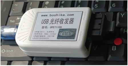 圖1 USB光纖收發器在筆記本鍵盤上外形圖