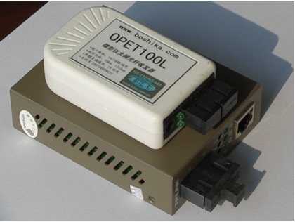 波仕電子還同時提供以太網接口的光纖收發器OPET100L。OPET100L的大小與USB光纖收發器一樣,不同的是電口為RJ-45以太網口,無需安裝驅動程序,但是需要外接5V電源。OPET100L可以成對使用、也可以與USB光纖收發器等符合100Base-TX標準的以太網光口通信。