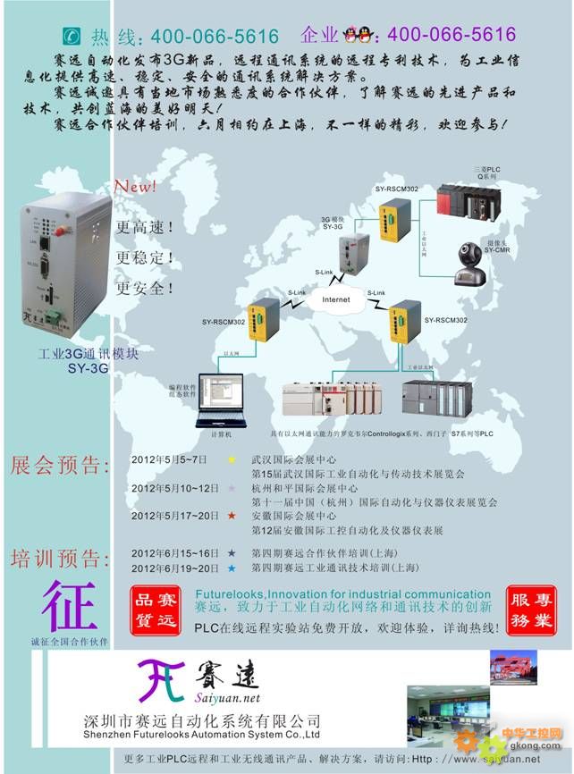賽遠將在5月份參加第15屆武漢國際工業自動化與傳動技術展覽會、第十一屆中國(杭州)國際自動化與儀器儀表展覽會、第12屆安徽國際工控自動化及儀器儀表展,6月份在上海舉行第四期賽遠合作伙伴培訓和工業通訊技術培訓,歡迎廣大客戶蒞臨現場了解和洽談合作。