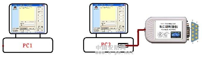 此時本地計算機PC1必須接USB232GH8,并且打開好靈通串口,而且本地計算機PC1還必須有另外一個自己的串口COM-X。此時遠程計算機必須接USB232GH8,并且打開好靈通串口。