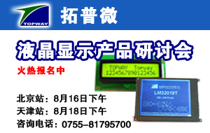 為了更有效地推廣產(chǎn)品,令外地客戶能更直觀地了解拓普微產(chǎn)品,拓普微除了繼續(xù)參加一年一度的高交會及香港電子展等國內(nèi)外大型展覽會外,近期啟動了國內(nèi)主要城市產(chǎn)品研討會,屆時眾多拓普微熱銷產(chǎn)品及近期新品將現(xiàn)場演示,并由資深工程師介紹液晶顯示技術(shù)及應(yīng)用須知,8月16日、18日將分別在北京、天津兩地舉辦,現(xiàn)正火熱報名預(yù)留席位中!