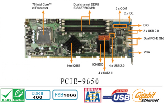 PCIE-9650采用Intel Q965 + ICH8DO最新芯片組,支持Intel LGA775 Core 2 Quad處理器,F(xiàn)SB最大可達(dá)1066MHz;4根雙通道的DDRII內(nèi)存插槽,最大可支持到8GB的內(nèi)存,引領(lǐng)工業(yè)電腦進(jìn)入Core 2/DDRII的嶄新時(shí)代。同時(shí)PCIE-9650采用PICMG1.3規(guī)范,支持最新的I/O接口規(guī)格,包括PCI-E總線、6個(gè)USB 2.0、4個(gè)帶Raid 0/1/10的SATAII、雙PCI-E高性能千兆網(wǎng),提升了整個(gè)工業(yè)電腦平臺(tái)的系統(tǒng)頻寬。