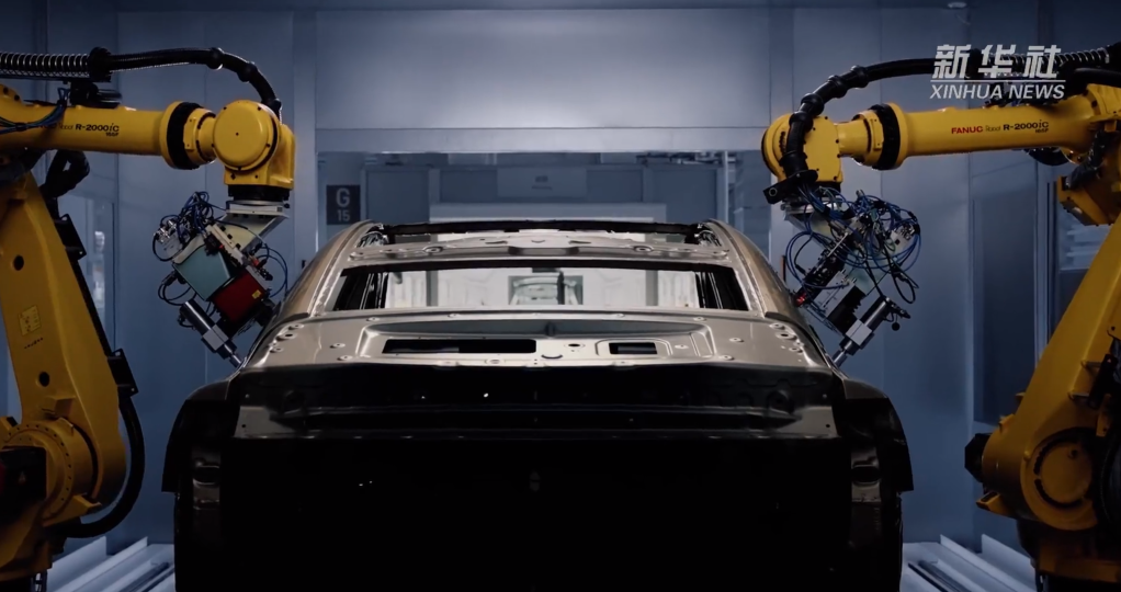在安徽合肥,江淮汽車集團與華為攜手打造的尊界超級工廠車身焊裝車間,機器人靈活進行高精度焊接作業(yè)。 全車四門安裝只需102秒。
