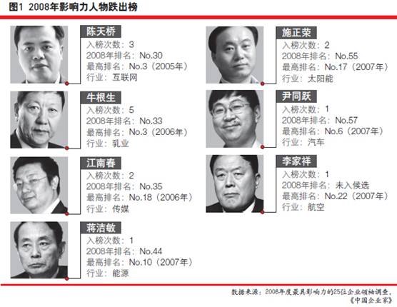 從2003年到2008年,6年時間里能夠持續進入影響力榜的企業家,只有4人 。對于那些站在最高處的商業大佬而言,2008是一個前所未有的險峰。