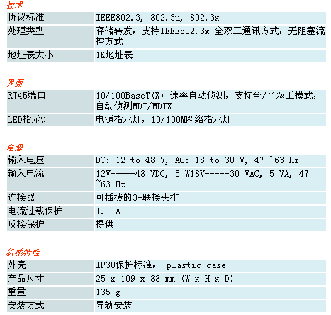 速率10/100M,支持全雙工/半雙工,自動識別MDI/MDIX