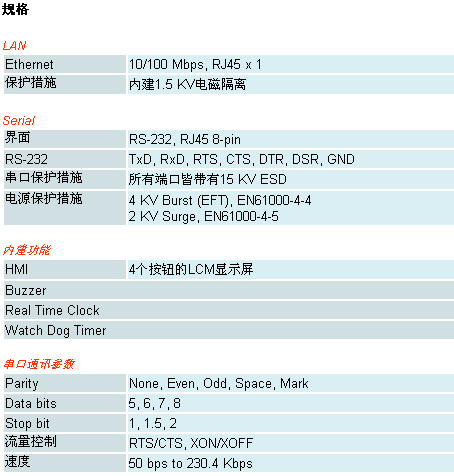 連接頭上的系統LED、串口Tx/Rx LED、以及以太網絡LED顯示器讓現場工程師能夠快速的分析問題所在,并且讓監控的動作變的簡單、輕松。NPort 5610的LED顯示器不僅能夠顯示目前系統和網絡的狀態,也能協助現場工程師監控所連接串口設備的狀態。