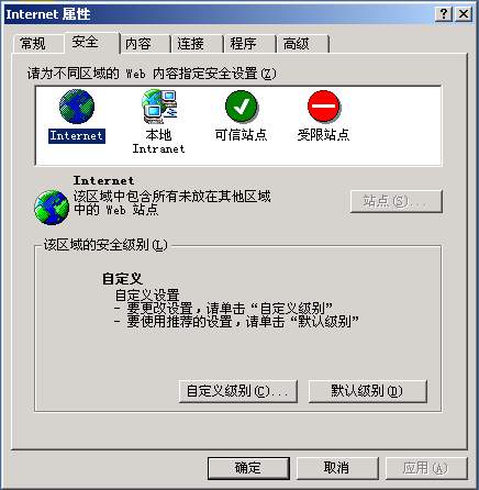 寬帶用戶可以通過修改IE屬性-〉安全-〉Internet安全級別
