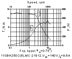 以下列出由110系列電動(dòng)機(jī)與MC系列驅(qū)動(dòng)器所組成的典型驅(qū)動(dòng)單元牽出特性曲線。