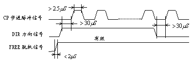 ②方向信號DIR至少應提前脈沖信號30 μS,以保證方向優先建立。