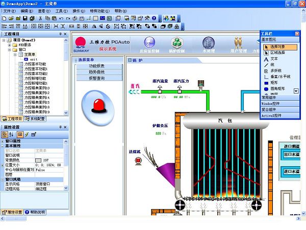 方便、靈活的開發(fā)環(huán)境,提供各種工程、畫面模板、可嵌入各種格式(BMP、GIF、JPG、JPEG、CAD等)的圖片,方便畫面制作,大大降低了組態(tài)開發(fā)的工作量;
