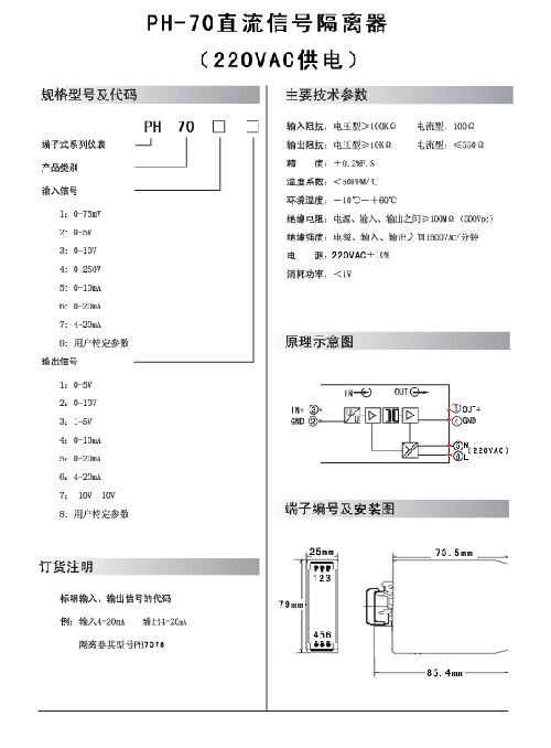 北京平和 PH-16無源電位計信號隔離器(C類)