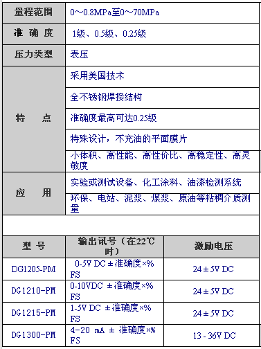 概述:PMM平面膜片型壓力傳感器/變送器特別適合對粘稠介質(泥漿、煤漿、油漆、原油等)壓力的測量。它比原PM產品更具有體積小、重量輕、高精度、高可靠性和安裝方便的特點。壓力量程范圍從0~0.8MPa至0~70MPa,提供1%FS、0.5%FS、0.25%FS三種準確度。壓力傳感器/變送器密封于不銹鋼殼體內,壓力連接接口可根據客戶要求定制。