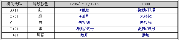 電纜(電氣接頭)導線顏色(代碼)和連接方式: