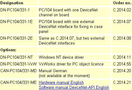 *interface from PC to one or two independent DeviceNet channels for PC/104