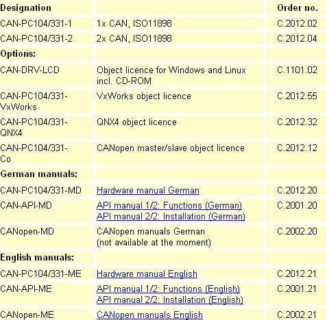 PC104\PC104+接口的CAN通訊卡,含1至4個CAN口,支持CANopen和DEVICENET協議,智能卡和非智能卡,提供豐富的函數庫和軟件