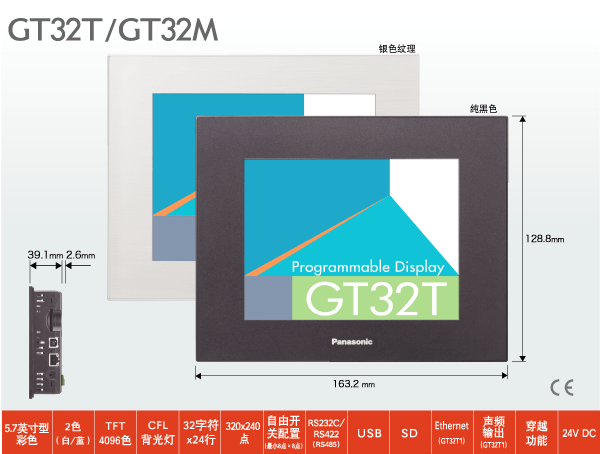 5英寸型配備了高亮度、長壽命CFL的GT32M,和擁有TFT4096色彩色QVGA的GT32T。同時具有SD槽、USB端口、音頻輸出和以太網功能。