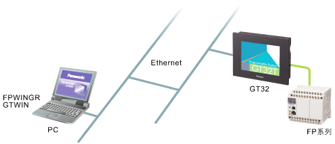 GT32T1的以太網功能可實現與遠處的本公司PLC FP系列產品間的相互通訊。