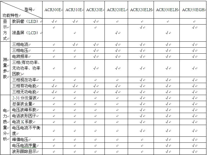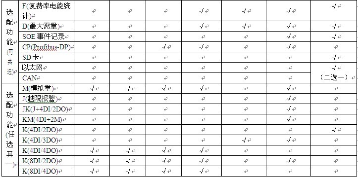 注:1、ACR300E、ACR310E、ACR320E(L)在選配K(4DI/4DO、8DI/4DO)功能時無脈沖信號輸出端口;