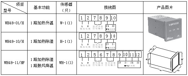 ●W-1為溫度傳感器,H-1為濕度傳感器,WH-1為溫濕度傳感器,控制器型號選定后已經包括傳感器,無需另行選定;