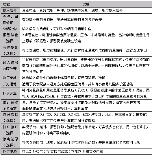 ·本儀表具有對(duì)流體的溫度和壓力變化進(jìn)行補(bǔ)償計(jì)算的功能。流量測(cè)量時(shí),如果被測(cè)流體溫度和壓力偏離設(shè)計(jì)值時(shí),會(huì)給體積流量和質(zhì)量流量測(cè)量結(jié)果帶來(lái)一定誤差,本儀表具備對(duì)一般氣體、過(guò)熱蒸汽、飽和蒸汽的溫度、壓力補(bǔ)償計(jì)算功能。儀表同時(shí)有流量、壓力和溫度三個(gè)輸入量,可以消除溫度、壓力變化對(duì)流量測(cè)量結(jié)果的不良影響