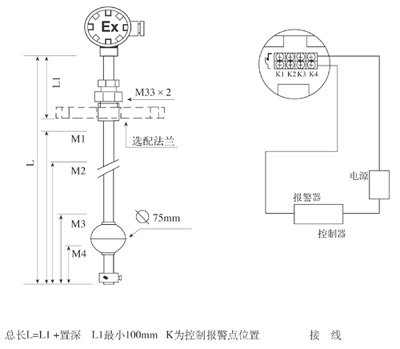 | 廣泛用于各種液位的測量,如油、水、污水、酸、堿等介質的液體。采用隔爆接線盒和進口干簧管,導桿和浮球不銹鋼材料。除了用于敞口液位的測量還可用于壓力<0.5Mpa密封容器的液位控制及報警,工作溫度-20℃ ~ 120℃ 。本產品應用范圍廣,可靠性高。 |