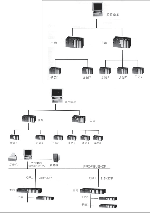 硬件設備 采用 SIEMENS公司成熟的S7-300 過程控制系統作為全廠的自動化系統硬件平臺。整個系統由2套主站和8套子站,1臺工程師站組成。在中央控制室的工程師站提供動態顯示生產流程實時信息以及全部報警功能。計算機監控軟件采用西門子WINCC,它具有畫面顯示、趨勢曲線、報警處理、報表處理、數據管理、網上瀏覽等功能。 整個自控系統體現了西門子全廠一體化的先進自控理念,并且網絡結構完全符合現場總線的國際標準。 傳輸方式 Profibus_Dp總線式傳輸方式。 監控軟件 本系統采用西門子wincc做為上位機監控軟件,它對監視、控制和生產過程以及對生產數據進行歸檔和進一步處理提供了最佳的解決方案。 WinCC是基于Microsoft 的32位操作系統,該操作系統是PC平臺上的標準系統。它為過程數據的可視化、報表、采集和歸檔以及為用戶自由定義應用程序的協調集成提供了系統模塊。提供良好的人機界面,及各種方便的操作功能,可以完成工藝參數的設定,過程參數及狀態顯示,實時和歷史曲線顯示,故障報警,故障復位及報告輸出等功能。并能按照數據采集分類標準組織生成報表。