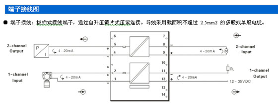 ● 整機重量 約110g~120g● 性能指標(biāo)標(biāo)準(zhǔn)精度: ±0.1%FS溫度漂移: ±0.015%/℃響應(yīng)時間: ≤1s(0 → 90%)穩(wěn)定時間: ≤3s電源電壓變動影響: ±0.1%(允許電壓范圍)負(fù)載電阻變化影響: ±0.1%/250Ω通道隔離: 輸入-輸出-電源之間隔離絕緣電阻: ≥100MΩ/500V DC(AC)隔離能力: 1500VAC/1 分鐘 50Hz負(fù)載能力: ≤500Ω (電流輸出4~20mA、0~20mA)≥3KΩ (電壓輸出0~5V、0~10V)抗電磁兼容性: 符合 IEC 61000 相關(guān)抗電磁標(biāo)準(zhǔn)產(chǎn)品結(jié)構(gòu)● 結(jié)構(gòu) 卡裝式構(gòu)造;模塊化表芯;ABS 材質(zhì)機殼;拔插式端子。1. 輸入接線端 綠色標(biāo)識,連接至現(xiàn)場設(shè)備2. 電源指示燈: 儀表通電或處于正常工作狀態(tài)時燈亮3. 輸出接線端 綠色標(biāo)識,連接至控制系統(tǒng)或其它單元組合儀表4. 左側(cè)機殼蓋 與儀表右面機殼緊密扣合,用合適工具可撬開5. 電源接線端 2孔 3mm 供電電源接線 (13-/14+)6. 透氣散熱孔 密集散熱孔,通風(fēng)對流設(shè)計7. 產(chǎn)品標(biāo)簽粘貼部位 PET耐熱材質(zhì)標(biāo)簽,標(biāo)注產(chǎn)品型號代碼 及相關(guān)重要參數(shù)8. 右側(cè)機殼 為主體機殼構(gòu)件,與左機殼蓋扣合。9. 安裝卡口 35mm 標(biāo)準(zhǔn) DIN 導(dǎo)軌卡式安裝