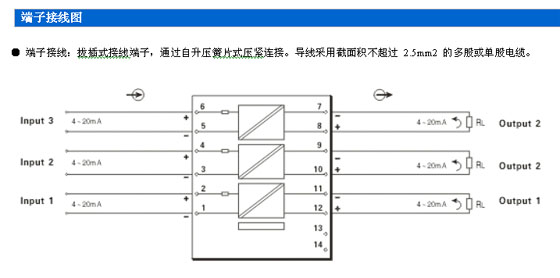產(chǎn)品結(jié)構(gòu)● 結(jié)構(gòu) 卡裝式構(gòu)造;模塊化表芯;ABS 材質(zhì)機殼;拔插式端子。1. 輸入接線端 綠色標(biāo)識,連接至現(xiàn)場設(shè)備2. 電源指示燈: 儀表通電或處于正常工作狀態(tài)時燈亮3. 輸出接線端 綠色標(biāo)識,連接至控制系統(tǒng)或其它單元組合儀表4. 左側(cè)機殼蓋 與儀表右面機殼緊密扣合,用合適工具可撬開5. 電源接線端 2孔 3mm 供電電源接線 (13-/14+)6. 透氣散熱孔 密集散熱孔,通風(fēng)對流設(shè)計7. 產(chǎn)品標(biāo)簽粘貼部位 PET耐熱材質(zhì)標(biāo)簽,標(biāo)注產(chǎn)品型號代碼 及相關(guān)重要參數(shù)8. 右側(cè)機殼 為主體機殼構(gòu)件,與左機殼蓋扣合。9. 安裝卡口 35mm 標(biāo)準(zhǔn) DIN 導(dǎo)軌卡式安裝