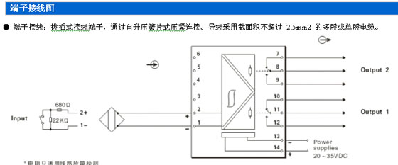 產(chǎn)品結(jié)構(gòu)● 結(jié)構(gòu) 卡裝式構(gòu)造;模塊化表芯;ABS 材質(zhì)機(jī)殼;拔插式端子。1. 輸入接線端 綠色標(biāo)識(shí),連接至現(xiàn)場設(shè)備2. 電源指示燈: 儀表通電或處于正常工作狀態(tài)時(shí)燈亮3. 輸出接線端 綠色標(biāo)識(shí),連接至控制系統(tǒng)或其它單元組合儀表4. 左側(cè)機(jī)殼蓋 與儀表右面機(jī)殼緊密扣合,用合適工具可撬開5. 電源接線端 2孔 3mm 供電電源接線 (13-/14+)6. 透氣散熱孔 密集散熱孔,通風(fēng)對(duì)流設(shè)計(jì)7. 產(chǎn)品標(biāo)簽粘貼部位 PET耐熱材質(zhì)標(biāo)簽,標(biāo)注產(chǎn)品型號(hào)代碼 及相關(guān)重要參數(shù)8. 右側(cè)機(jī)殼 為主體機(jī)殼構(gòu)件,與左機(jī)殼蓋扣合。9. 安裝卡口 35mm 標(biāo)準(zhǔn) DIN 導(dǎo)軌卡式安裝