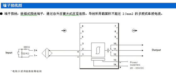 獨(dú)立的電源接線端子連接,電源:20~30VDC