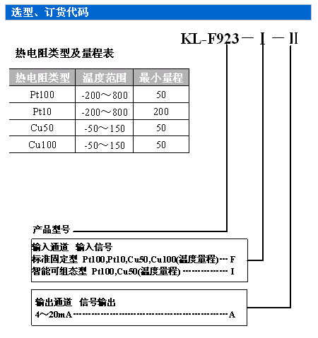 訂貨代碼為:KL-F923-FA(Pt100  0~100℃)