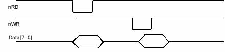 "讀、寫"信號(hào),低電平有效,在其上升沿鎖存數(shù)據(jù),上升沿后有效數(shù)據(jù)應(yīng)保持10ns。 AD設(shè)備緩沖區(qū)滿后,應(yīng)設(shè)置本AD設(shè)備使用的狀態(tài)線有效,在讀緩沖區(qū)最后一個(gè)字節(jié)的"讀"信號(hào)上升沿后的100ns內(nèi)使?fàn)顟B(tài)線無效。 |