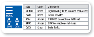 OnCell G2150I提供幾個(gè)LED來表示基本的狀態(tài)信息,可以一目了然地看到當(dāng)前的信號(hào)強(qiáng)度和當(dāng)前的通訊類型例如GSM或GPRS。