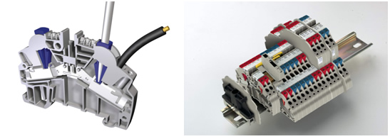 taris 系列 絕緣換位接線端子 (快速免剝線端子) 適用于大批量小線徑導(dǎo)線的連接, 便捷,快速,連接可靠。可用在特殊行業(yè),例如風(fēng)能。 |
