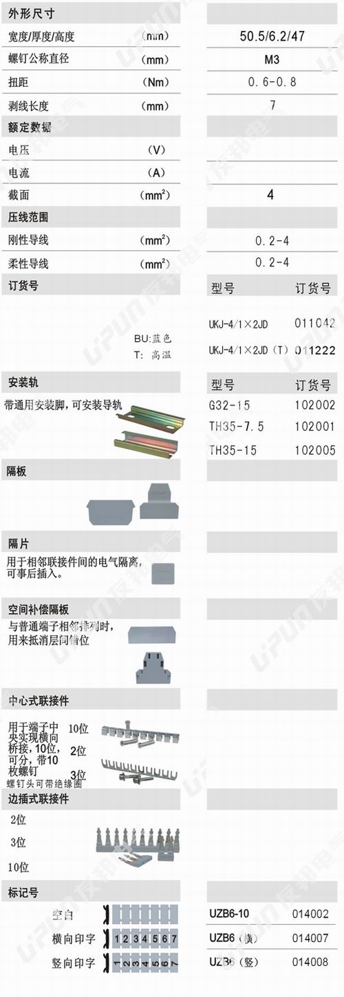 UKJ-4/1X2JD 框式鏍釘接線端子排