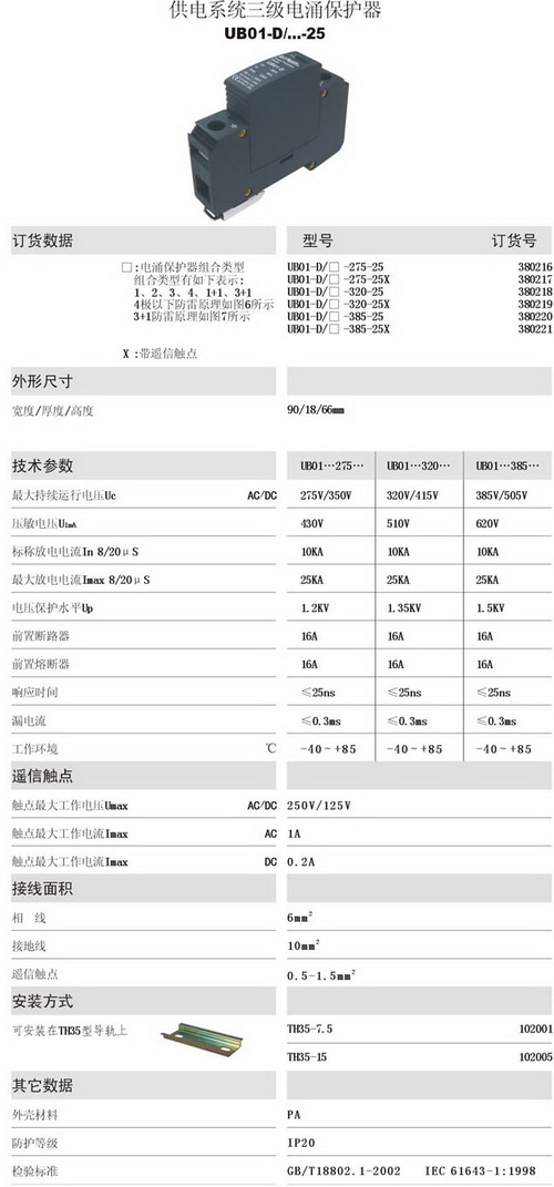 UBO1-D/25 供電系統三級電涌保護器