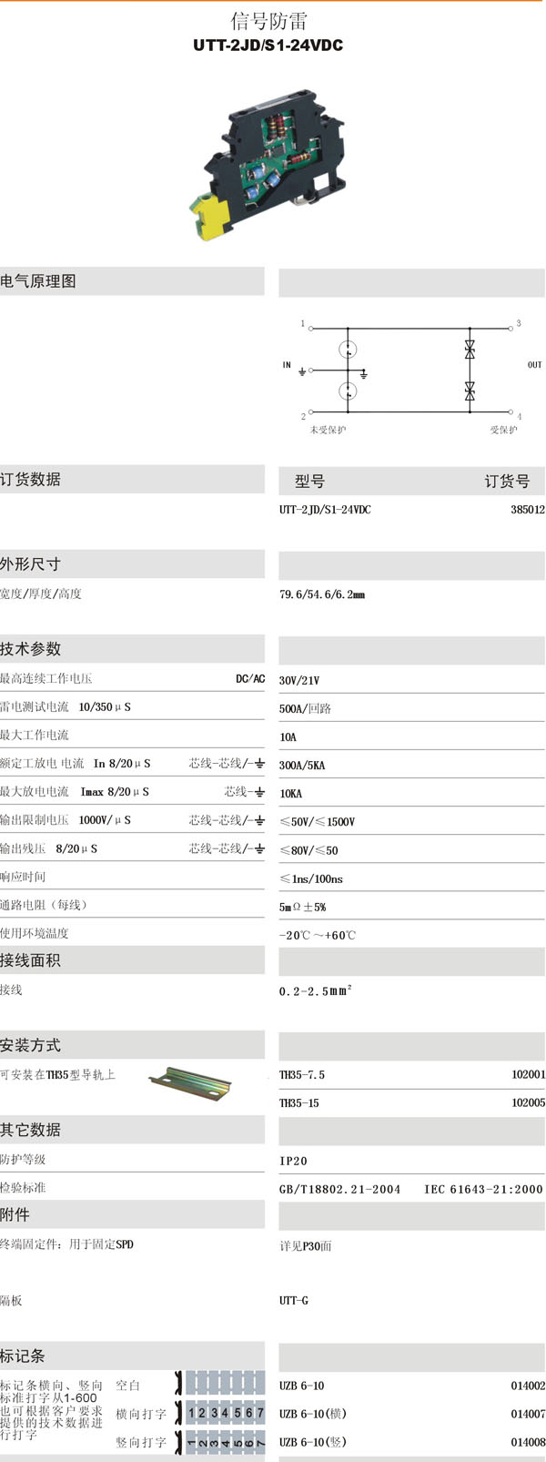 → UTT-2JD/S1-24VDC 信號防雷電涌保護器