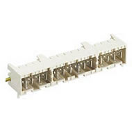 Angular tab header, with partitions, neutral and/or protective conductor bridge in insulation displacement technique (IDT), lower side lock and positioning spigot