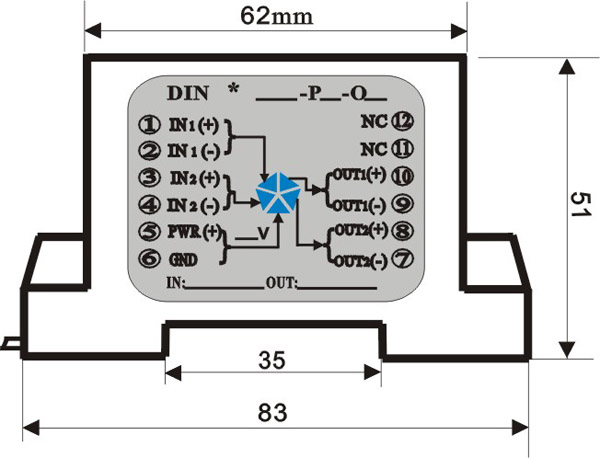 一進二出模擬信號磁電隔離變送器:DIN 1X2 |