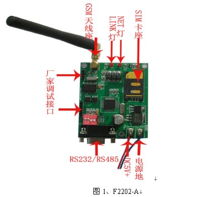 LINK指示燈是模塊工作狀態指示燈,當F2302模塊開機正常后,該燈將處于長亮狀態,DB9串口同時將輸出“SYSSTART”字符串。
