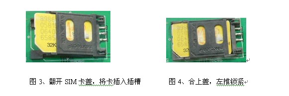沿著卡座平行方向搓開卡槽的上蓋,將SIM卡對準上蓋的卡槽平行插入,注意SIM卡的銅片要和卡槽底座相對,SIM卡的三角缺口與卡槽底座的缺口想對。然后合上上蓋,鎖緊。