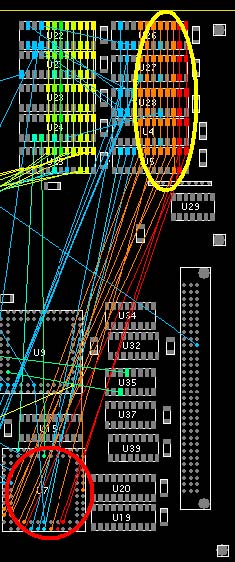 如上左圖所示的紅圈和黃圈內(nèi)出現(xiàn)了許多網(wǎng)絡(luò)標示為紅色的錯誤。將紅圈內(nèi)的電路移動到如右圖所示的更靠近黃圈的位置時,您可以發(fā)現(xiàn)錯誤數(shù)量減少了,網(wǎng)絡(luò)顏色也變成了綠色。