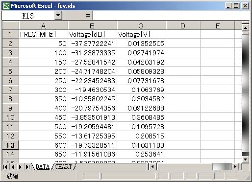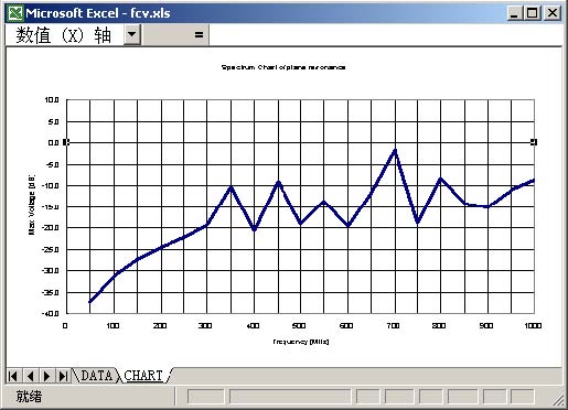 當然,各個頻率點的振蕩電壓峰值也可以通過Execl 表格的形式以數(shù)值的方式表達出來,如下圖所示。例子中的頻率值是以50MHz 為步長進行增長的測試結(jié)果,當然您也可以根據(jù)您的需要隨意設(shè)置其初始測試的頻率值和步長的。