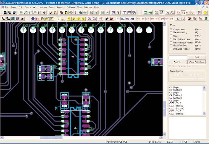 CAMCAD Test Suite建立的數據集通過快速定位PCB板上的任何元件和探針,可以用于改善維修和調試時間,也可以用于確定由于檢視設備引起的潛在問題。無論產生的可測試性反饋針對布線還是針對電子設備放置探針,CAMCAD Test Suite都加速了對每塊PCB的分析,節省了時間和資金。