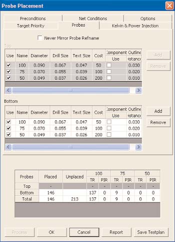 CAMCAD Test Suite支持飛針測試和在線夾具測試的通路分析方法,不同類型的目標-表面貼裝、通孔、測試焊盤、過孔、連接器-都可以被根據優先級順序完成探測目的。根據增加通路分析和探針布置的數據準備的重要性,CAMCAD Test Suite提供了一次性正確完成工作的工具,它支持在線測試(ICT),邊界掃描(BST),自動X光(AXI),自動光學(AOI)和飛針測試(FPT)和檢視系統。