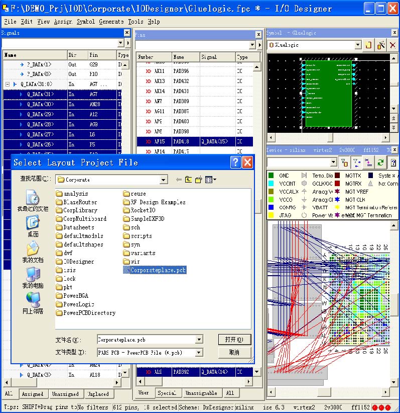 可結(jié)合PCB 網(wǎng)表優(yōu)化FPGA 器件的管腳分配,支持管腳分配信息在IO Designer、