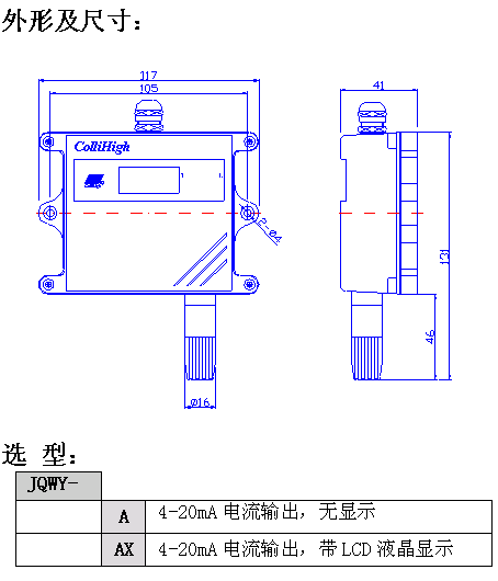 Collihigh【昆侖海岸】壓力傳感器、壓力變送器JQWY系列高精度大氣壓力、溫度一體化