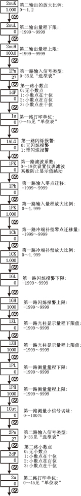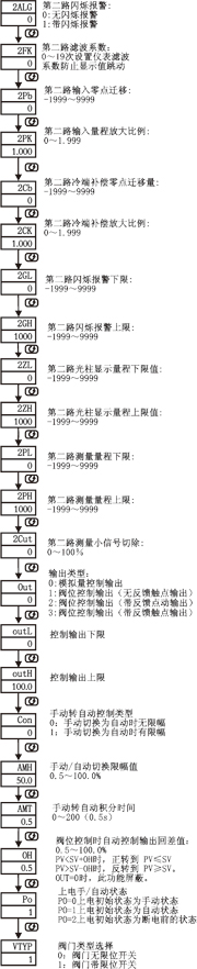 ②PV第一路外給定輸入分度號(hào)/③SV第二路閥位反饋輸入分度號(hào) |